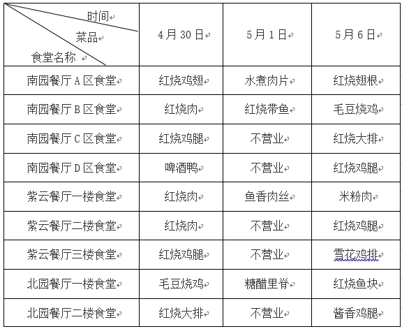 两个校区教工餐厅五一”期间不营业,5月6日正常开餐。
