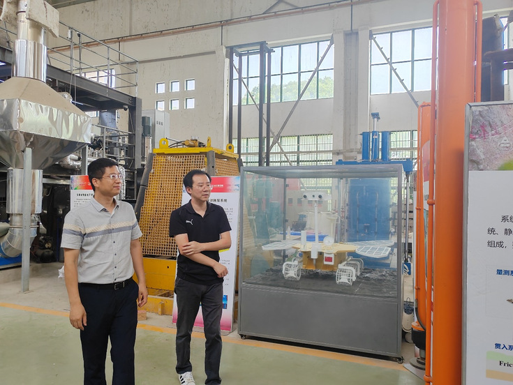 交流会后,周安楠教授在张宁院长陪同下参观了智能地下探测安徽省重点实验室和结构试验大厅,详细询问了实验室的建设方向与特色优势。